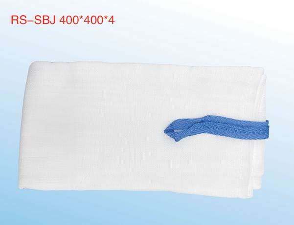 無切邊外露的長方形或方形敷料;RS-SBJ由紗布折疊成長方形或方形,四周縫合,角部可縫